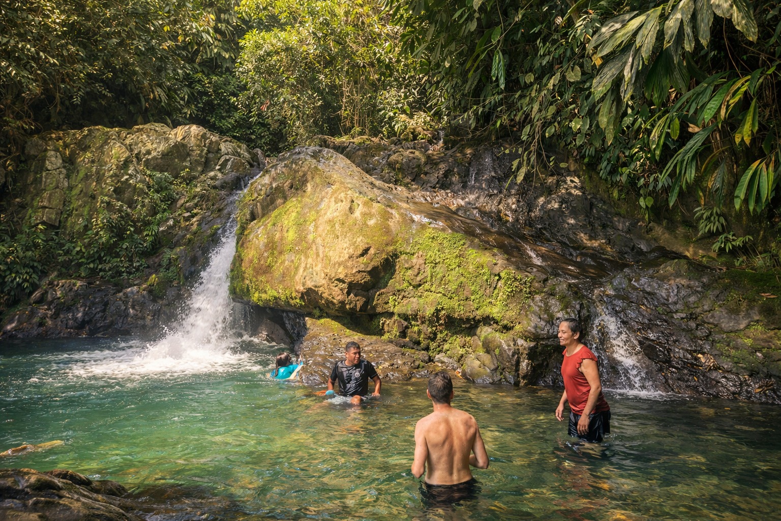 After our enriching cacao experience at the farm, we’ll head to a stunning, crystal-clear river with a small waterfall. Here, we’ll use the cocoa butter we made earlier for an exfoliating session, we’ll spread it all over our body to slough off dead skin cells, moisturize and rejuvenate our skin, and we’ll finish with a great natural massage inside the waterfall.