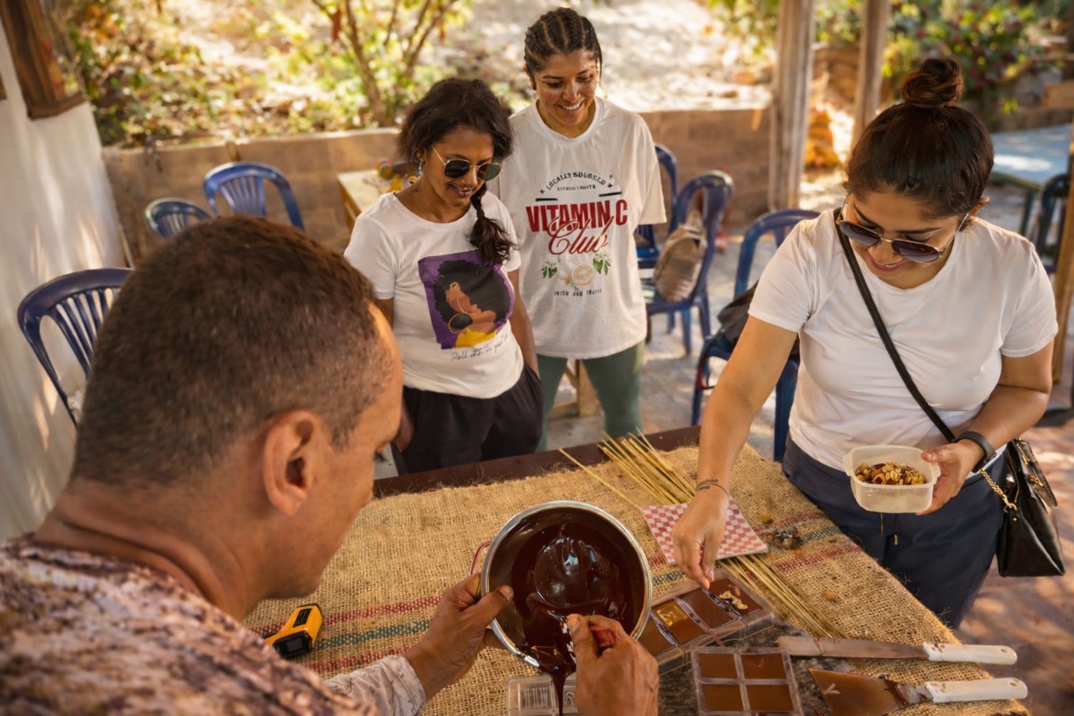 Soon we’ll arrive to a gorgeous local family Cacao farm, immersed in natural beauty, full of a diverse of crops, flowers and plants, where we’ll live an authentic Cacao experience that will take you through the entire process of making chocolate, from the Cacao tree to the drink and chocolate bar!