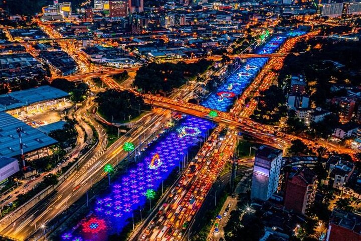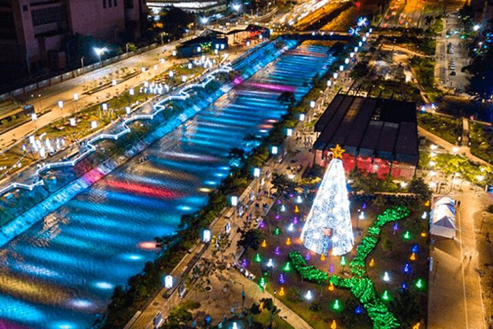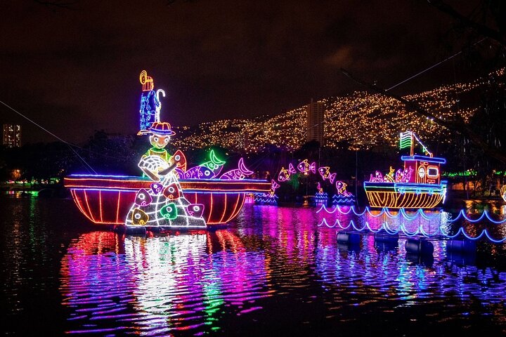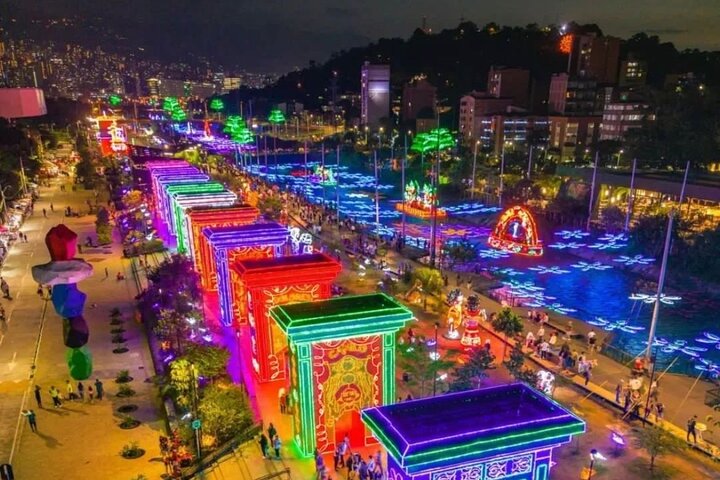 Visit to top light displays at riverside zones, parks, plazas, and decorated streets of Medellín